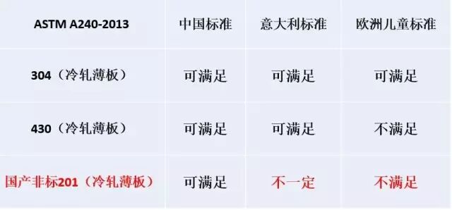 这完全取决于自身的要求了(就如同买车是买国产QQ还是进口宝马)。换句话说,如果你要求苛刻,参照意大利标准或者欧盟儿童专用及护理用品对金属迁移的要求,304是不错的选择。但是如果参考国家标准,国产非标201价格便宜,也是不错选择(当然如果一旦发生腐蚀,金属迁移会加速,建议更换更好材质)。