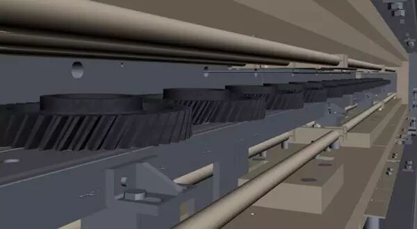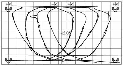 单件热处理设备设计为连续炉、加热区域较小,加热元件布置合理,如图7所示。零件在移动的每个工位温度均匀性和气氛均匀性差异会极小。淬火区域也很小 ,实现单件淬火,如图8所示,还可以实现批量处理不能实现的气体淬火工艺,零件冷却状态重复性、一致性好。实现零件变形量小,变形一致性、重复性好的目标。如图9零件热处理后的齿向框图图例,尽管齿向不符合设计要求,但一致性好、每个零件重复性好。