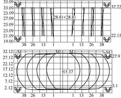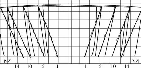 只有热处理实现了变形规律性好、一致性好、重复性好的前提条件,零件变形基本上都能通过热前工艺修形的冷热配合方法进行调整、矫正。图10、图11为零件热前的齿向齿形框图。用滚剃工艺热后不需要进行磨齿加工的工艺而实现高的齿形、齿向符合性和高强度的齿面质量。